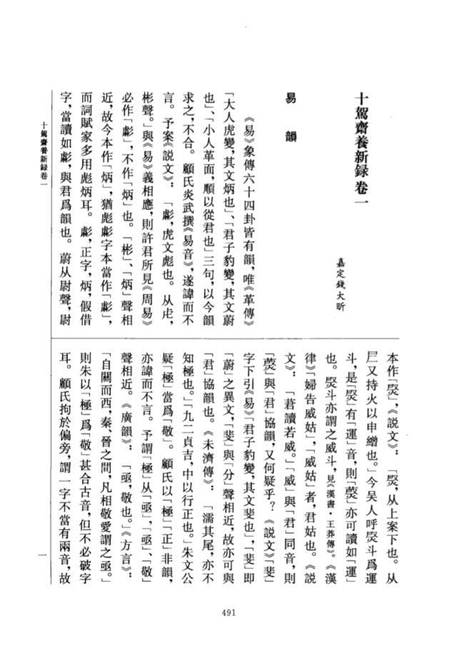 清钱大昕的《十驾斋养新录》是清代学术笔记的代表作之一,其学术价值甚至在顾炎武《日知录》之上。钱大昕(1728-1804),江苏嘉定人,乾隆十九年(1751)进士,官至詹事府少詹事,乾隆四十年归里,三十年潜心著述,历主钟山、娄东和紫阳书院。钱大昕是乾嘉学派的代表人物之一,其学既博且精,把史学置于与经学同等的地位,对转变一时学术趋向影响甚大。他长于宋辽金元四史,兼及舆地、金石、典制、天文历算以及音韵。著述约四百万字,最著名的有《廿二史考异》、《十驾斋养新录》等。《十驾斋养新录》二十卷《余录》三卷成书最晚,为其毕生精力之荟萃,涉及经学、小学、史学、官制、地理、姓名、古书、金石、词章、术数等各个方面,考证精审,为文史学者案头所必备。