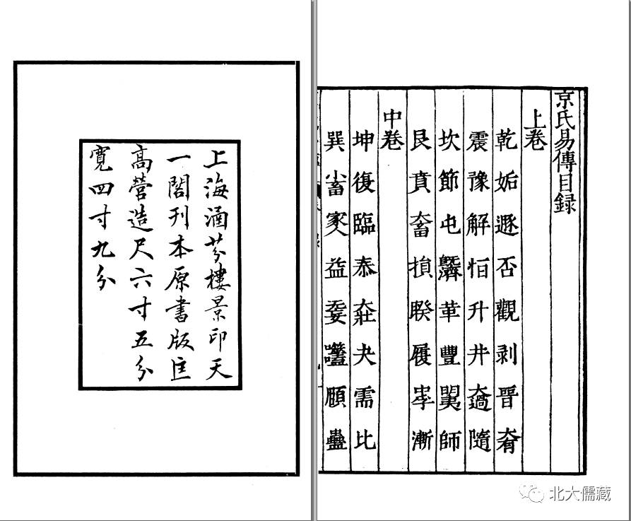 《京氏易传》三卷,西汉京房撰,三国陆绩注,明范钦订。京房(前77—前37年),本姓李,字君明,东郡顿丘(今河南清丰西南)人。京房治易师事焦延寿,后者从孟喜学易,其说长于灾变。京房尽得其术,用之尤精,开创了今文《易》学,其弟子尝说“房言灾异,未尝不中”。三国时,吴人陆绩曾为《京房易传》做过注释。北宋神宗时,晁说之得“文字颠倒舛讹”的《京氏易传》于民间,服习三十余年,“以其象数辨正文字之舛谬”,刊行于世。至明代,浙江鄞县范钦校订此书,藏之天一阁。