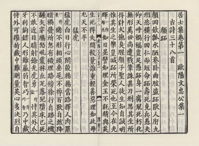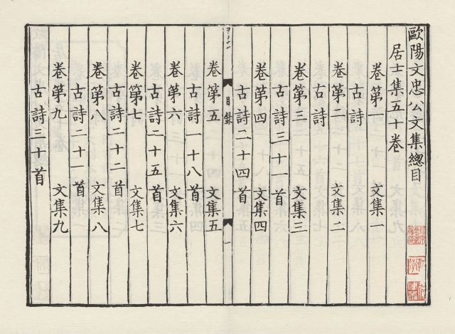 欧阳修晚年曾亲自编定《居士集》五十卷,去世后其子欧阳发又增编《易童子问》、《诗本义》、《五代史记》、《归荣集》及杂著述等十部一百五十七卷,是为家本。其后各地争相传刻,或全集合集,或分集选集,然苦无善本。南宋时,周必大搜集众本,会同孙谦益、丁朝佐、曾三异等人,精心编校《欧阳文忠公集》一百五十三卷,前附胡柯所编年谱一卷,后附行状、墓志、传文等五卷。此后宋元刻本多以周必大本为宗,并陆续有续添校补,之前诸刻则逐渐散佚。周必大所藏欧阳恕写本《居士集》后为曾天麟收藏,元末时,其孙曾鲁校以当时尚可一见的吉、苏、家、宣等宋刻别本,保存了许多异文资料,颇具校勘价值。明初欧集以重刻曾鲁考异本为主,其余大多翻刻周必大本。清嘉庆二十四年,欧阳修二十七代孙欧阳衡以乾隆十一年欧阳安世刻本为底本,重新编校为《欧阳文忠公集》一百五十三卷、附录五卷。此本刊刻精美,错讹较少,是清代诸刻中的善本。