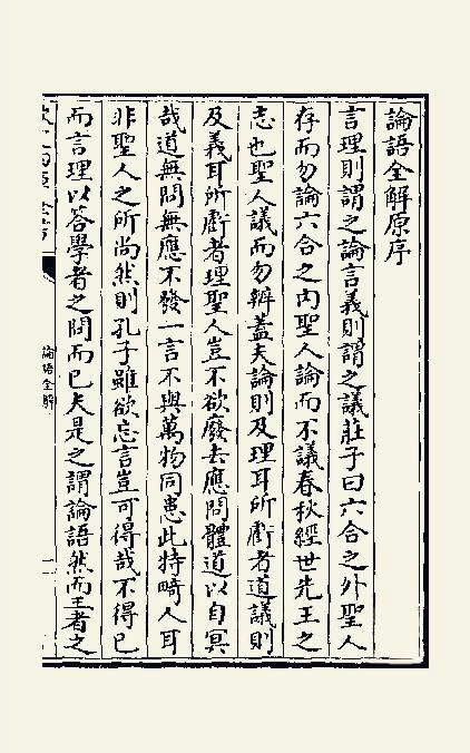 《儒藏》本《论语全解》为该书第一个整理本,由清华大学图书馆刘蔷女士和北京师范大学姜海军先生校点,人民文学出版社陈新先生审定。该书旧无刊本,除《四库全书》的几个抄本外,尚有六个抄本存世。经比对,《儒藏》选取了《文渊阁四库全书》本为底本,以年代较早的上海图书馆藏明抄本和清代曾作为《四库全书》底本的南京图书馆藏抄本为校本。南京图书馆藏抄本保留了当年四库馆臣校书的飞签和其他标记,可以考见《四库全书》校理群书的具体过程,本次整理时择要选录于校记中。