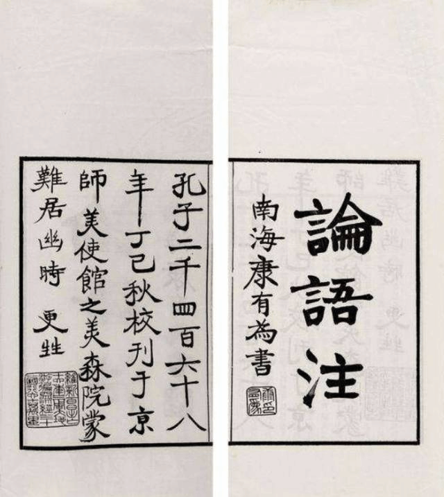 康有为(1858-1927)是晚清重要的学者和政治家。戊戌变法失败后,康有为在流亡国外期间遍注了四书,《论语注》即是其一(此外《礼运注》亦成于此时期)。《论语注》有校有注,文字多从今文《论语》,注解也表现出今文经学的倾向和康氏的改良思想。该书只有《万木草堂丛书》本一个版本,由北京大学哲学系王守常教授校点。校点过程中参考了楼宇烈先生在中华书局的整理本。
