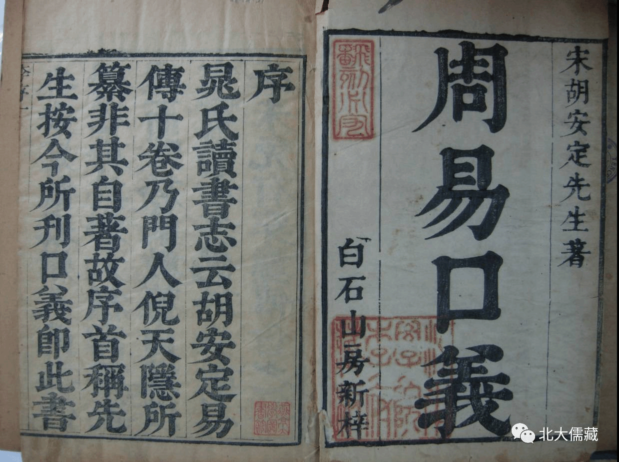 胡瑗以经学名世,博通五经,尤长于《易》学。《周易口义》本是胡瑗向弟子传授《易》学的讲义,未及传述,由其弟子倪天隐整理为十二卷。由于并非胡瑗亲笔,故名之曰“口义”。《周易口义》集中体现了胡瑗的《易》学思想,其说不论《易》之“互体”,“于象数扫除略尽”,唯以“变易”释“易”,重在阐明人生吉凶消长之理、进退存亡之道,以教授人们修身养性治国的方法,不杂释、道,仅在于倡明儒道,开宋代以来以义理说《易》之先河,被誉为“以义理说《易》之宗”,对后世影响很大。其后程颐作《易传》,继承并深化了胡瑗以儒理说《易》的传统,对其说解多有吸收。