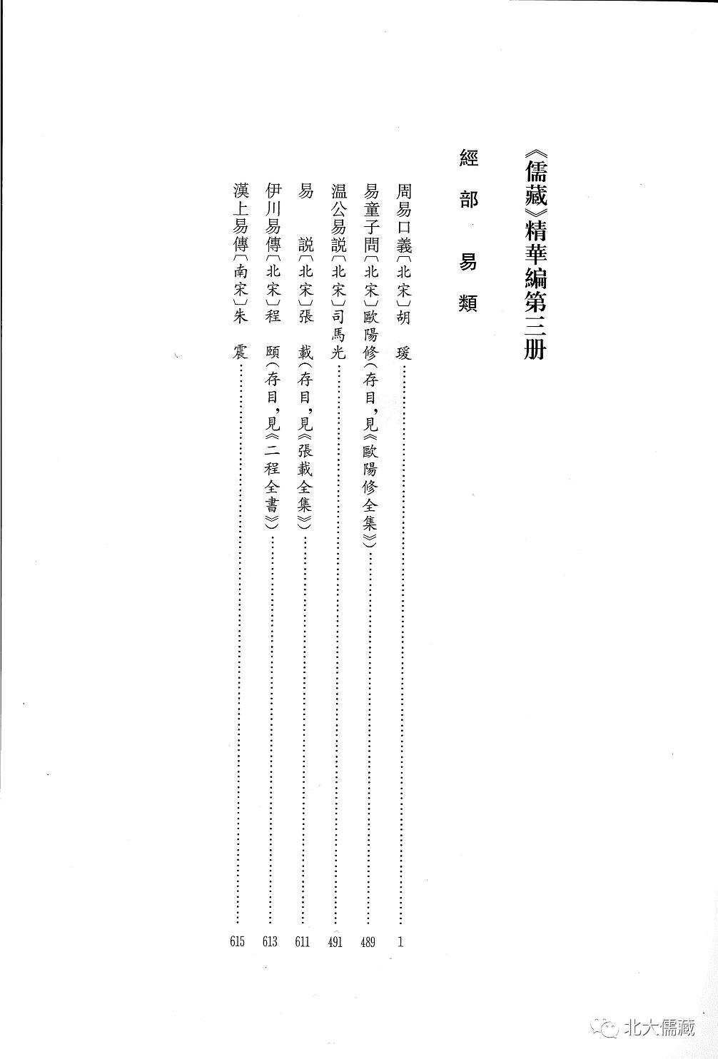《儒藏》精华编第3册已于2009年6月由北京大学出版社正式出版。本册隶属经部易类,收录宋代易学著作六种:北宋胡瑗《周易口义》、欧阳修《易童子问》(存目,见《儒藏》精华编第206-208册《欧阳修全集》)、司马光《温公易说》、张载《易说》(存目,见《儒藏》精华编第209册《张载全集》)、程颐《伊川易传》(存目,见《儒藏》精华编第212-213册《二程全书》)以及南宋朱震《汉上易传》。其中《周易口义》、《温公易说》、《汉上易传》均是首次推出标点整理本,以飨《易》学研究者。