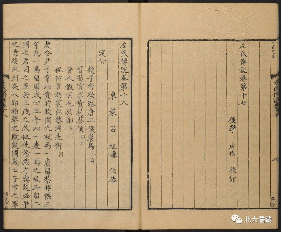 《儒藏》精华编第76册已由北京大学出版社于2016年9月正式出版,本册隶属经部《春秋》类《左传》之属,共收宋吕祖谦《春秋左氏传说》、《左氏传续说》,清顾炎武《左传杜解补正》,李贻德《春秋左氏传贾服注辑述》四种著作。