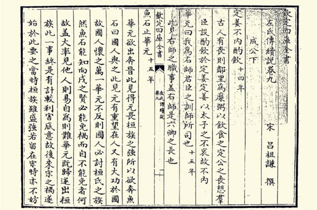 《左氏传说》,南宋吕祖谦(1137-1181)撰。祖谦字伯恭,婺州金华人,祖籍山东东莱,世称东莱先生。隆兴元年(1163)中进士及博学宏词科。历任太学博士兼国史院编修官、实录院检讨官等,终直秘阁著作郎兼国史院编修官。