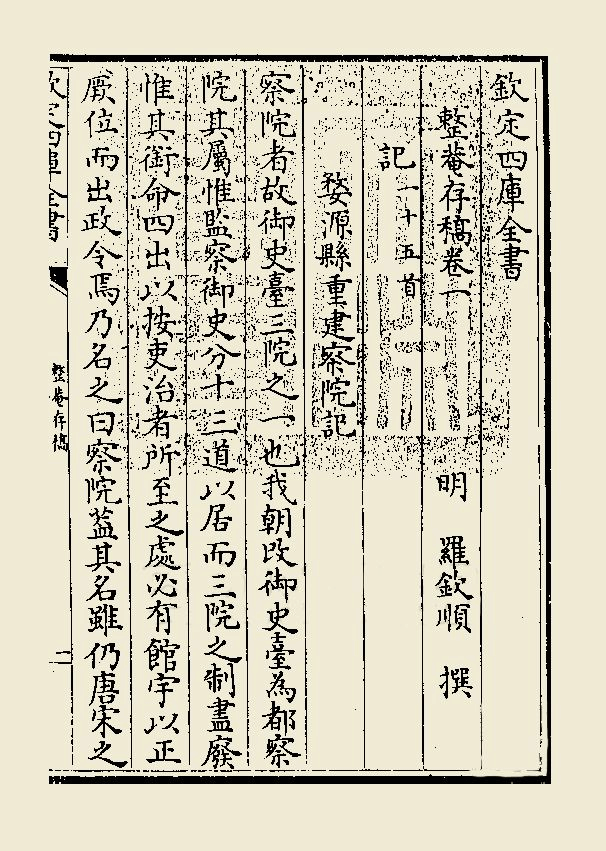 《整庵存稿》书影 · 文渊阁《四库全书》本