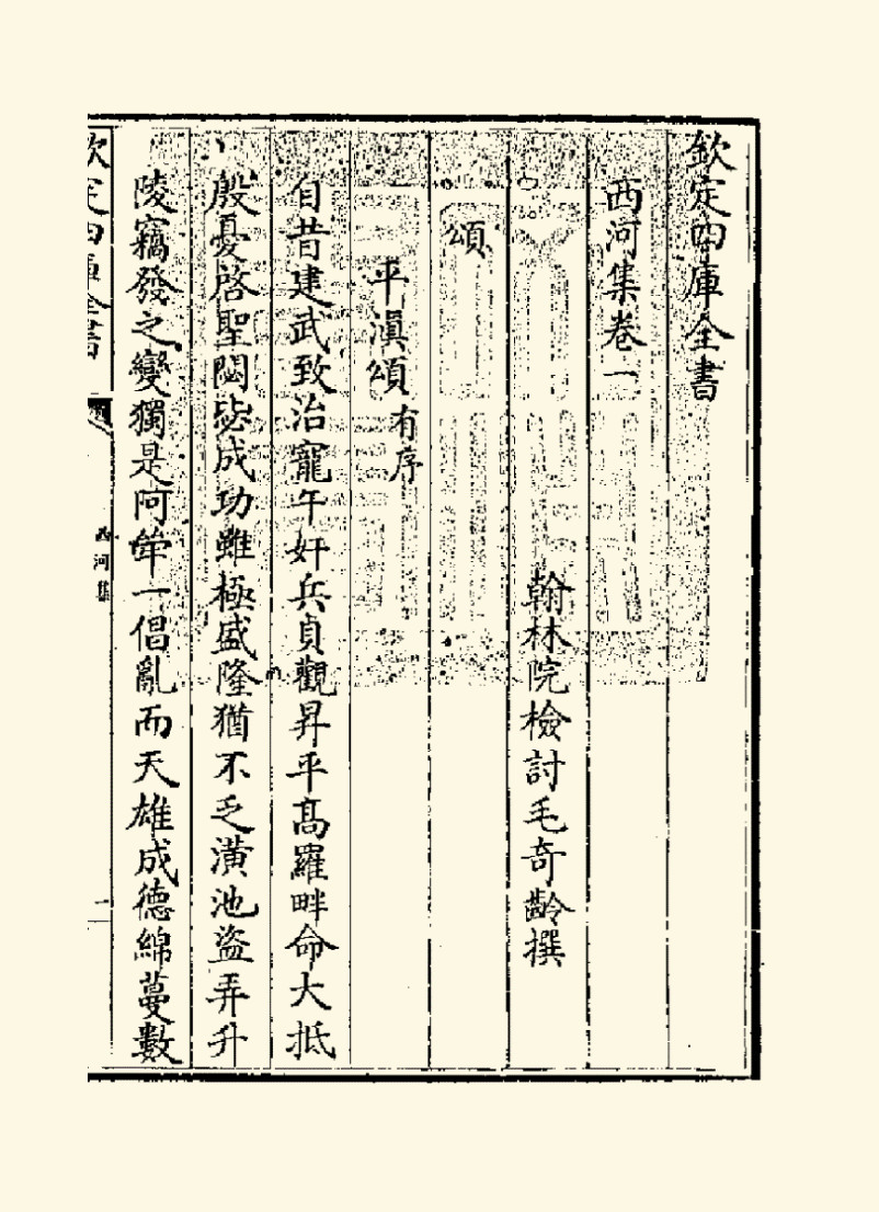 《西河合集》的文集部分凡二百三十四卷,《四库全书》剔除专著,唯录文诗词,得一百九十卷,更名《西河文集》。本次整理进一步舍弃《拟连厢词》,得一百八十九卷。