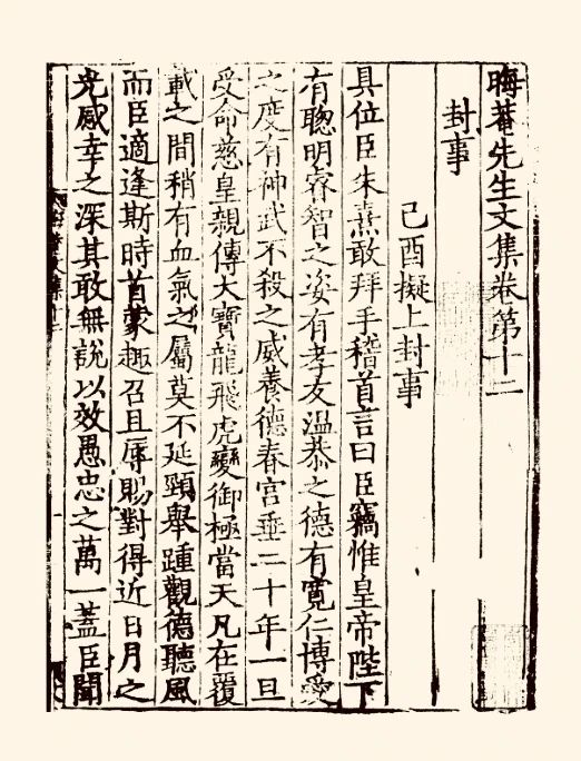 《晦庵先生朱文公文集》,是宋代理学的集大成者朱熹的诗文总集。朱子不以一艺自限,一生涉猎广博,著述宏富,研摩所及,遍于经史子集。其文集万象森罗,无微不烛,举凡文学、吏事、经术无不涉及。早在朱子在世之时,其弟子胡泳曾于庆元四年(1198)前后提及“麻沙所印先生文集”之事(见《文集》卷六三卷末《答胡伯量》书的《考异补遗》),可见至迟在庆元四年之前已有朱子文集问世,今台湾故宫博物院所藏《晦庵先生文集•前集》十一卷、《后集》十八卷(世称“淳熙本”,尝为《天禄琳琅书目•后编》著录),或即胡泳所见之本。此本编次无法,未经朱子手定无疑。庆元四年,王岘不顾朱子的阻拦,曾擅刻朱子《文集》三册,朱子“劝其且急收藏,不可印出”(见《文集》卷二九《答刘季章》及卷八四《跋王信臣行述》),此本后世不见传本。朱子身后,其季子朱在接受遗命,汇次其文(黄幹《勉斋集》卷三六《朱先生行状》),编成朱子文集八十八卷(朱玉《朱子文集大全类编》卷末跋),此本后世亦无传。另据魏了翁《朱文公语类序》,黄士毅亦“尝类《文公集》百五十卷”(《鹤山先生大全集》卷五三),《宋史•艺文志七》亦著录《朱熹前集》四十卷、《后集》九十一卷、《续集》十卷、《别集》二十四卷,惜今俱不见传。流传至今的朱子文集《正集》百卷,最早见录于陈振孙《直斋书录解题》,但不题编者。赵希弁《读书附志》卷下著录《晦庵先生文集》一百卷、《续集》十卷,解题云:“嘉熙己亥(三年,1239),王埜刻于建安,黄壮猷嗣成之,识于后。续集则王遂刊而序之。”此百卷本即后世朱子文集闽、浙二本的祖本。现藏上海图书馆的闽本朱子文集乃为宋咸淳元年(1265)建安书院所刻本的元刻明修本,《正集》一百卷乃据王埜本刻,《续集》十一卷乃淳祐十年(1250)徐幾在王遂十卷本的基础上增《与刘德华》一书而成,《别集》十卷则为景定四年(1263)余师鲁所辑。现藏于国家图书馆的宋刻浙本《晦庵先生文集》,除卷十八至卷十九多了劾唐仲友数状外,与闽本篇次、文字、阙文几同。由于闽本较浙本多《续》、《别》二集,故后世所刻的朱子文集大多祖述闽本。