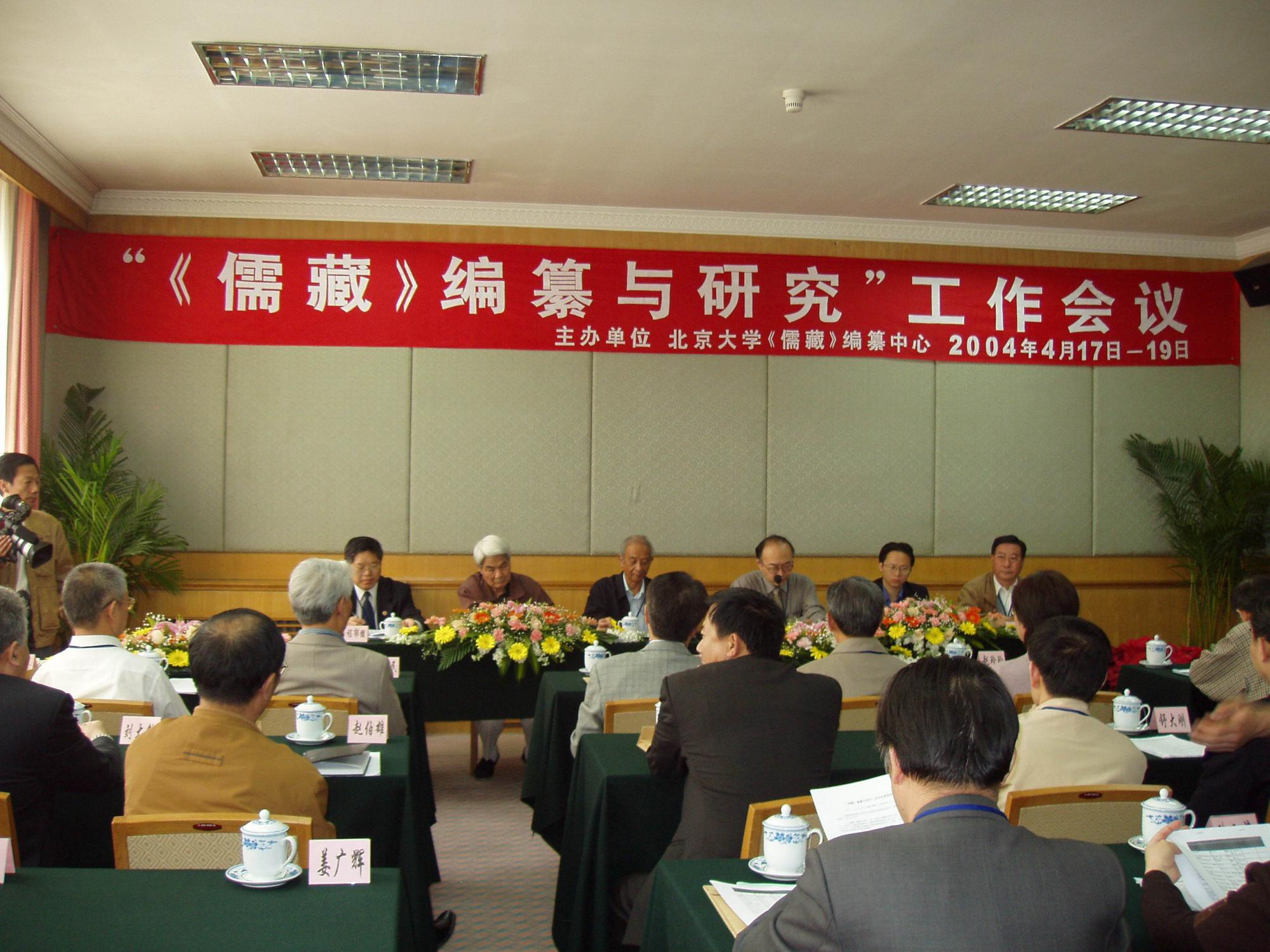 北京大学《儒藏》编纂与研究中心于2004年4月17至19日在北京达园召开“《儒藏》编纂与研究”工作会议,教育部有关领导、北京大学有关领导、海内外部类主编及编委出席会议。