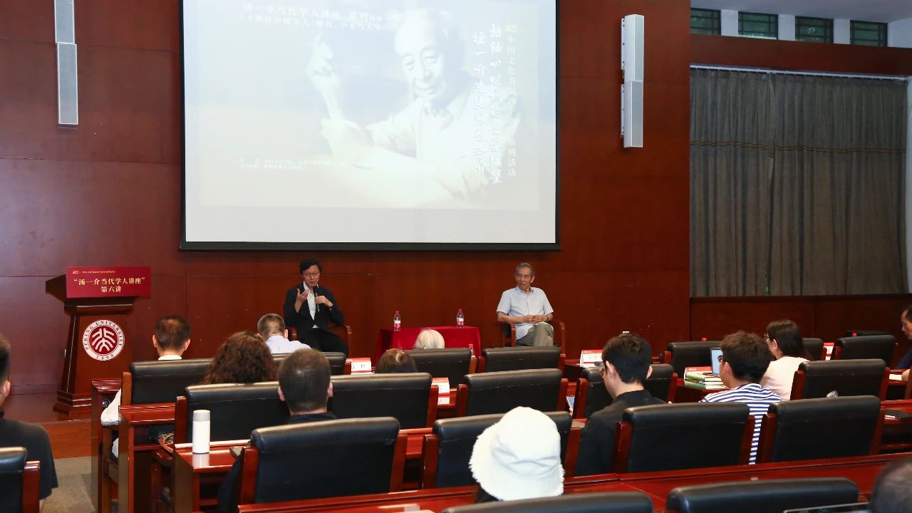 中国文化书院副院长李林、干春松(南开大学哲学院院长),支持机构代表乌旸丹丹、陆俊,以及汤先生家人、生前好友出席活动。80多位北大师生和社会各界人士现场聆听讲座。讲座通过中国文化书院视频号、北京大学哲学系视频号、凤凰网、中新社各直播平台、网易文化视频号、学人Scholar视频号等平台进行了全程直播,吸引170万人次在线观看。