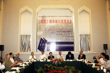 由北京大学《儒藏》编纂中心和北京大学出版社共同举办的“《儒藏》精华编出版座谈会”于2007年5月29日在北京大学百周年纪念讲堂举行。座谈会由《儒藏》工程首席专家、《儒藏》总编纂、北京大学《儒藏》编纂中心主任汤一介教授主持,旨在进一步沟通信息,凝聚人心,全力保障精华编的编纂高质量地顺利进行。