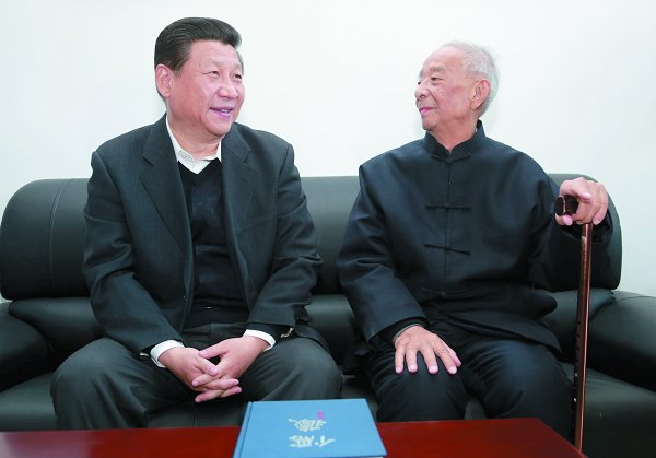 在人文学苑,习近平首先见了汤一介。这位87岁的哲学系“国宝”级教授,是不折不扣的学界“名门”。其父是更加著名的哲学家汤用彤,其妻则是中文系著名教授乐黛云。在那里,习近平和他细聊的是《儒藏》。