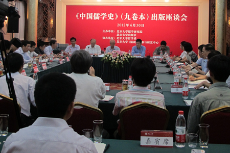 2012年6月30日,由北京大学儒学研究院、北京大学出版社主办,北京大学哲学系、北京大学《儒藏》编纂与研究中心协办的《中国儒学史》(九卷本)出版座谈会在北京大学陈守仁国际会议中心举行。新闻出版总署副署长阎晓宏、全国哲学社会科学规划办公室副主任杨庆存、北京大学常务副校长吴志攀、北京大学儒学研究院院长汤一介、北京大学出版社社长王明舟出席会议并讲话,出席会议的还有北京大学社会科学部部长李强、副部长耿琴,北京大学哲学系主任王博、党委书记尚新建以及许抗生、孙钦善、钱逊等有关方面专家学者30多人,会议由北京大学儒学研究院副院长李中华主持。