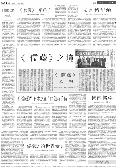 2009年1月,教育部专门召开《儒藏》工程工作会议,以推动《儒藏》的编纂与研究。同年4月,北京大学邀集中、韩、日、越等国学者,协商并落实《儒藏》域外文献的编纂工作。